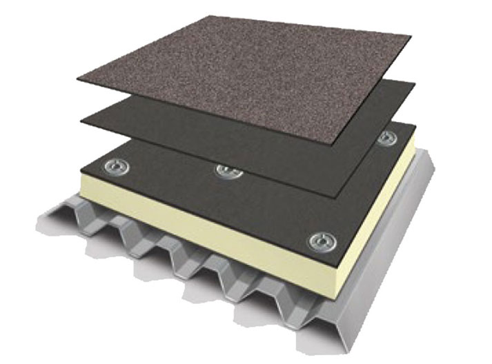 Introduced in the 1970s, modified bitumen features asphalt that has been modified (thus called modified bitumen). It features two plies of roofing membrane and modified asphalt creating a strong, reliable roofing system. Modified Bitumen roof systems have the widest range of application methods as they can be hot-mopped, cold-applied, heat-welded, or self-adhered. First, one ply of smooth-surfaced base sheet is installed, usually over insulation and cover board. Then the system is finished with a granulated cap sheet applied over the smooth base/ply sheet. With multiple layers of protection and many application methods, it is still one of the most trusted low slope roofing systems used in the industry today.